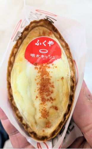 とりあえず福岡空港についたら、空港散策を簡単にしました…。実はめんたい系の食べ物って僕は普段あんまりかわないんです。けど…せっかくなので何かめんたい系を…と眺めていたら目に入ったのがコレ。 明太キッシュ。 お店は…明太子といえば僕でも知っている…